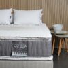 Il intègre une mousse agglomérée (80 kg/m’) à la base pour renforcer les bords et améliorer la durabilité, encadrant les ressorts ensachés Pocket Springs conformes aux normes britanniques, offrant un soutien ciblé et réduisant le transfert de mouvement.